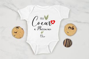 Ce body personnalisé « Petit Cœur à Marraine » est un cadeau tendre et pratique qui fera fondre le cœur de tous ceux qui le recevront ! 💖👶🎁