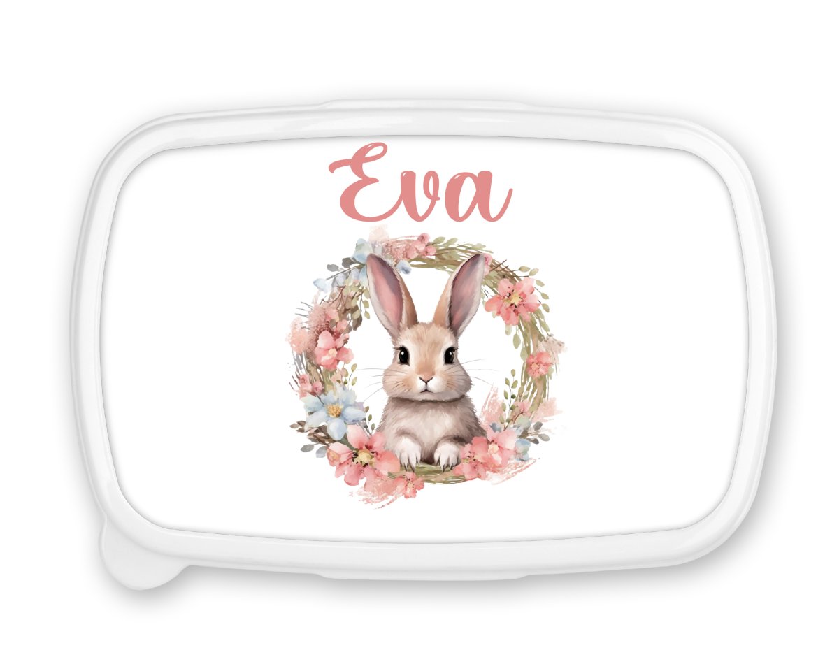 Boîte à Goûter Personnalisée – Lapin avec Prénom – Fond Bleu ou Rose – Cadeau Mignon et Pratique pour Pâques