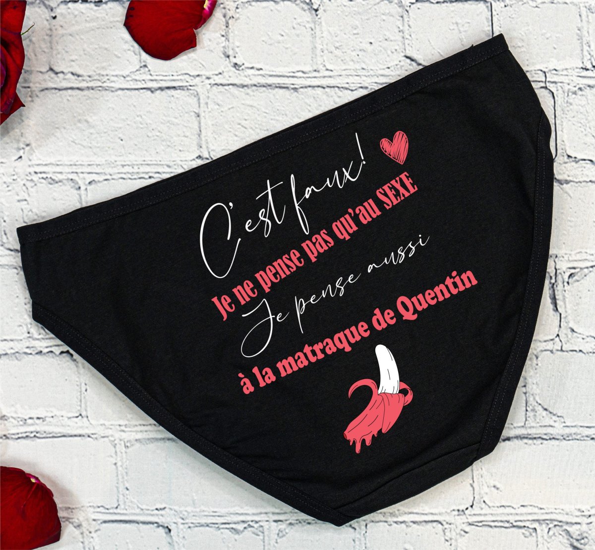 Affichez votre côté romantique et audacieux avec ce boxer noir , arborant la phrase «Prénom, grignote moi la banane ». Vous pouvez personnaliser ce message en remplaçant « Amandine » par un prénom ou un mot de votre choix, pour rendre ce cadeau encore plus unique et intime.