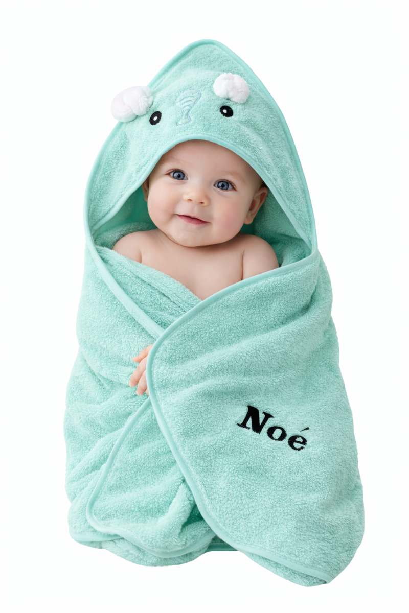 Offrez un moment de douceur à bébé avec cette cape de bain personnalisée éléphant 🐘