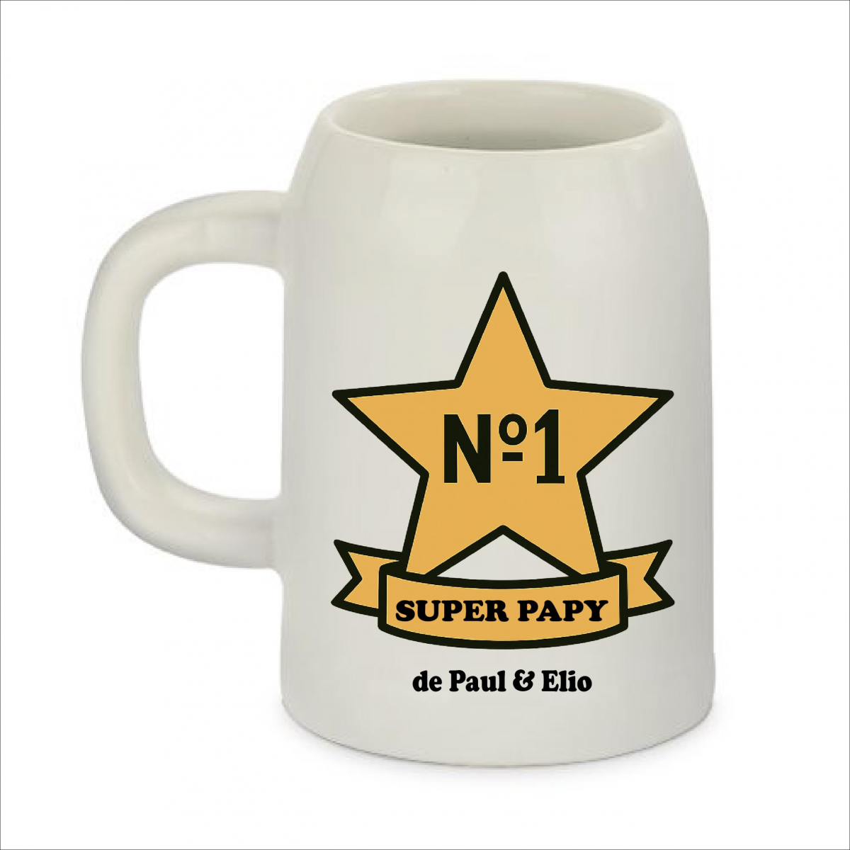 ✔ Design symbolique : grande étoile dorée et inscription « N°1 Super Papy ».