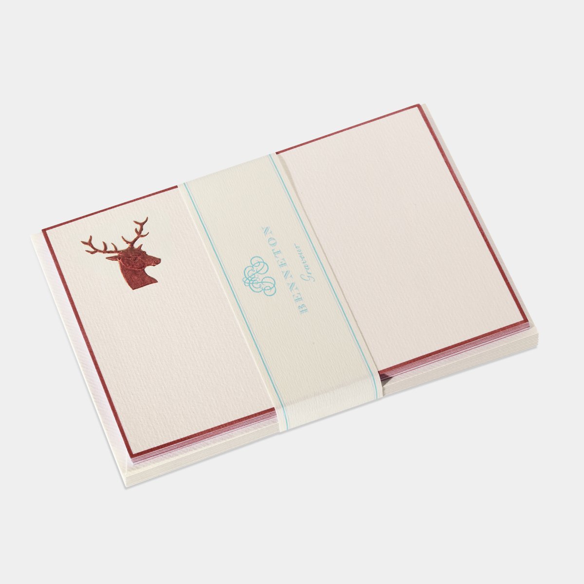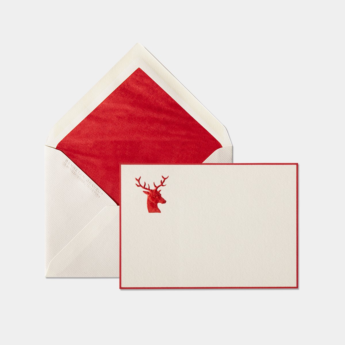 Les cartes de correspondance « cerf » de la collection Benneton comme toutes nos cartes aux motifs floraux, animaliers et fantaisie sont timbrées à la main sur presse à bras, carte par carte selon la technique dite du « timbrage brossé ».