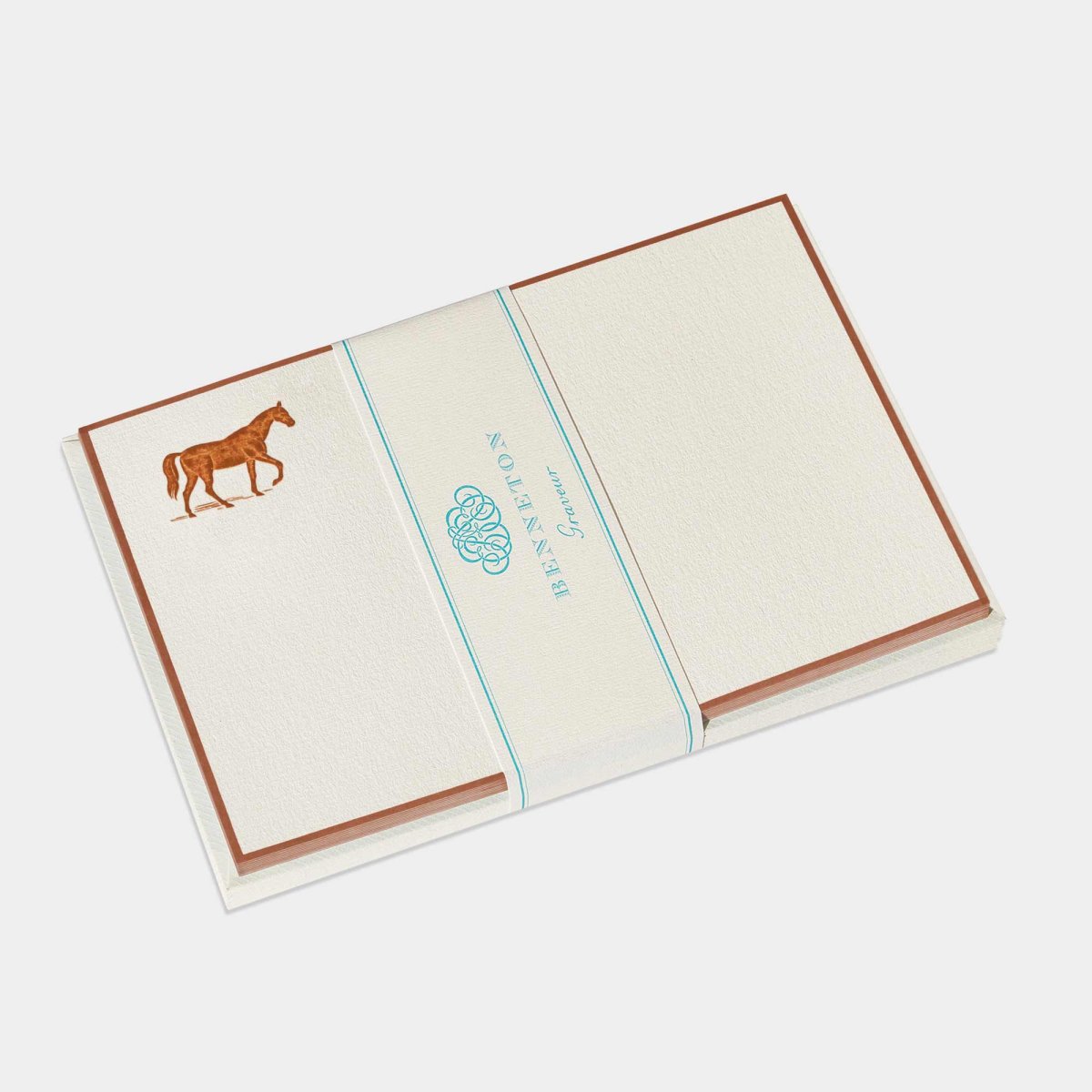Les cartes de correspondance « cheval » de la collection Benneton comme toutes nos cartes aux motifs floraux, animaliers et fantaisie sont timbrées à la main sur presse à bras, carte par carte selon la technique dite du « timbrage brossé ».