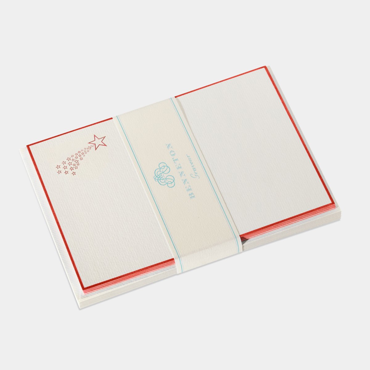 Les cartes de correspondance « étoile filante» de la collection Benneton comme toutes nos cartes aux motifs floraux, animaliers et fantaisie sont timbrées à la main sur presse à bras, carte par carte selon la technique dite du « timbrage brossé ».