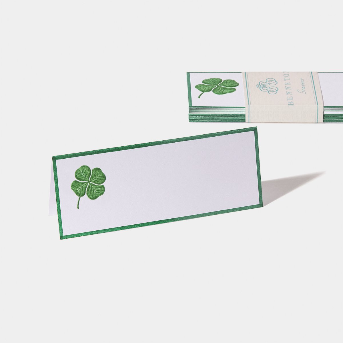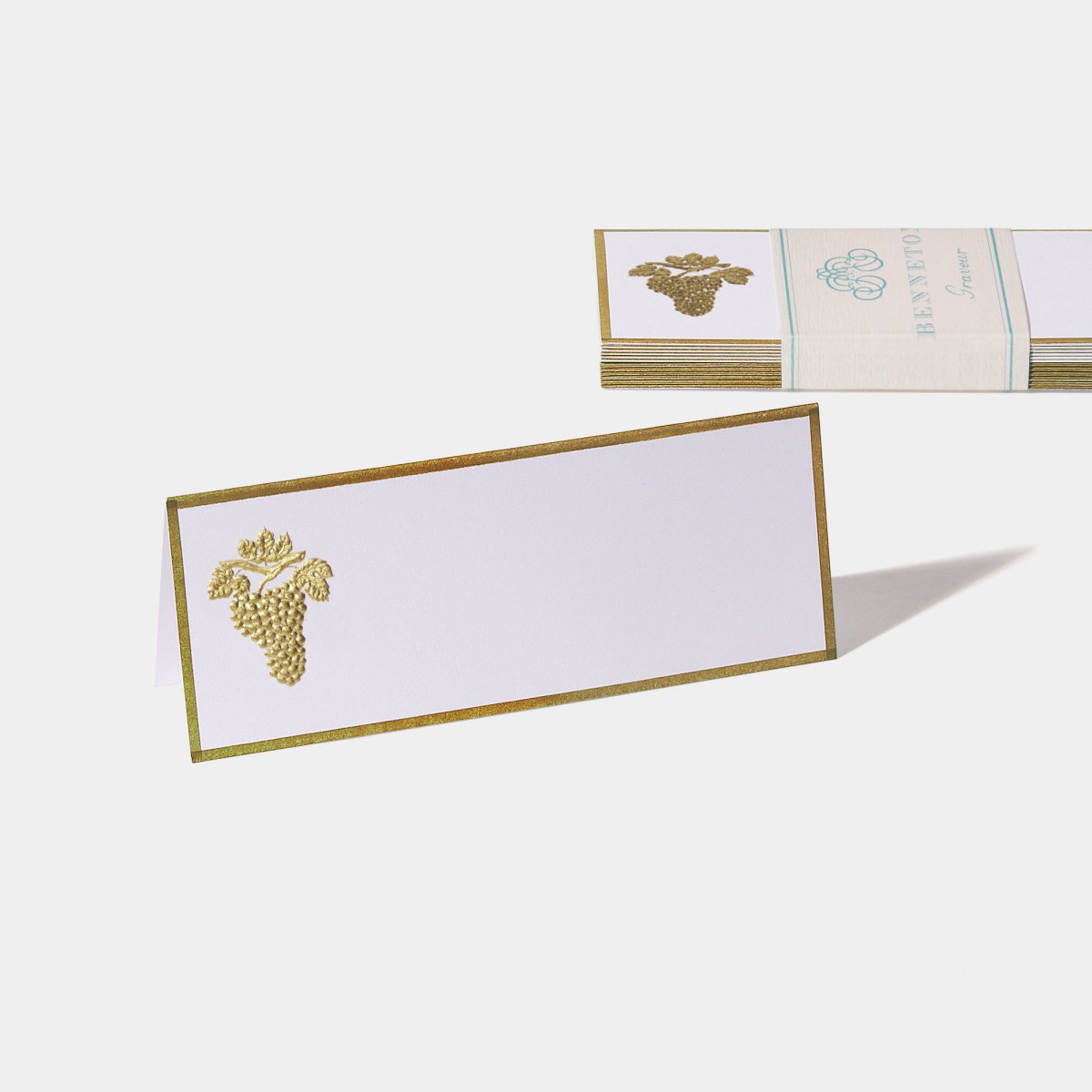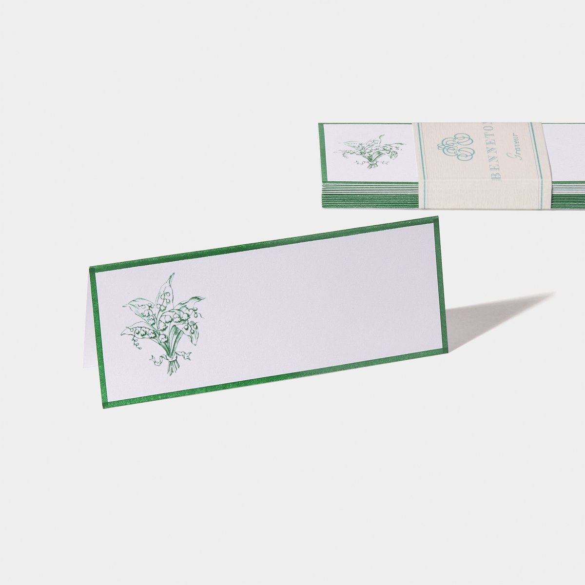 Les cartes de table aux motifs floraux, animaliers et fantaisie de la collection Benneton sont timbrées à la main sur « presse à bras », carte par carte selon la technique dite du « timbrage brossé ».