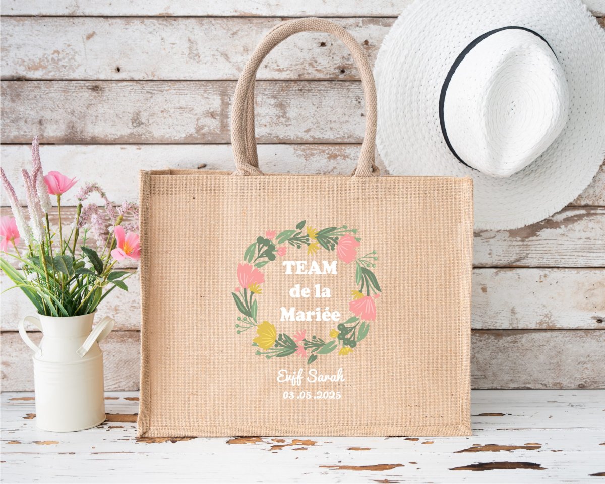 🌿 Pratique, élégant et personnalisé, ce grand sac en jute EVJF est parfait pour transporter toutes les affaires de la future mariée ou de ses amies pendant un week-end inoubliable 💕