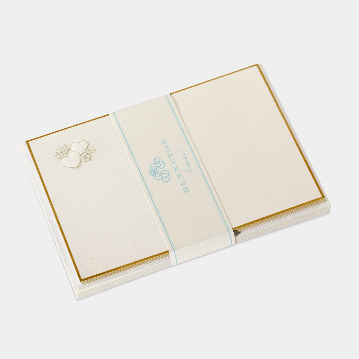 Benneton’s « hearts » correspondence cards, like all our floral, animal and fantasy cards, are hand-stamped on a hand press, card by card, using a technique known as “brushed stamping”.