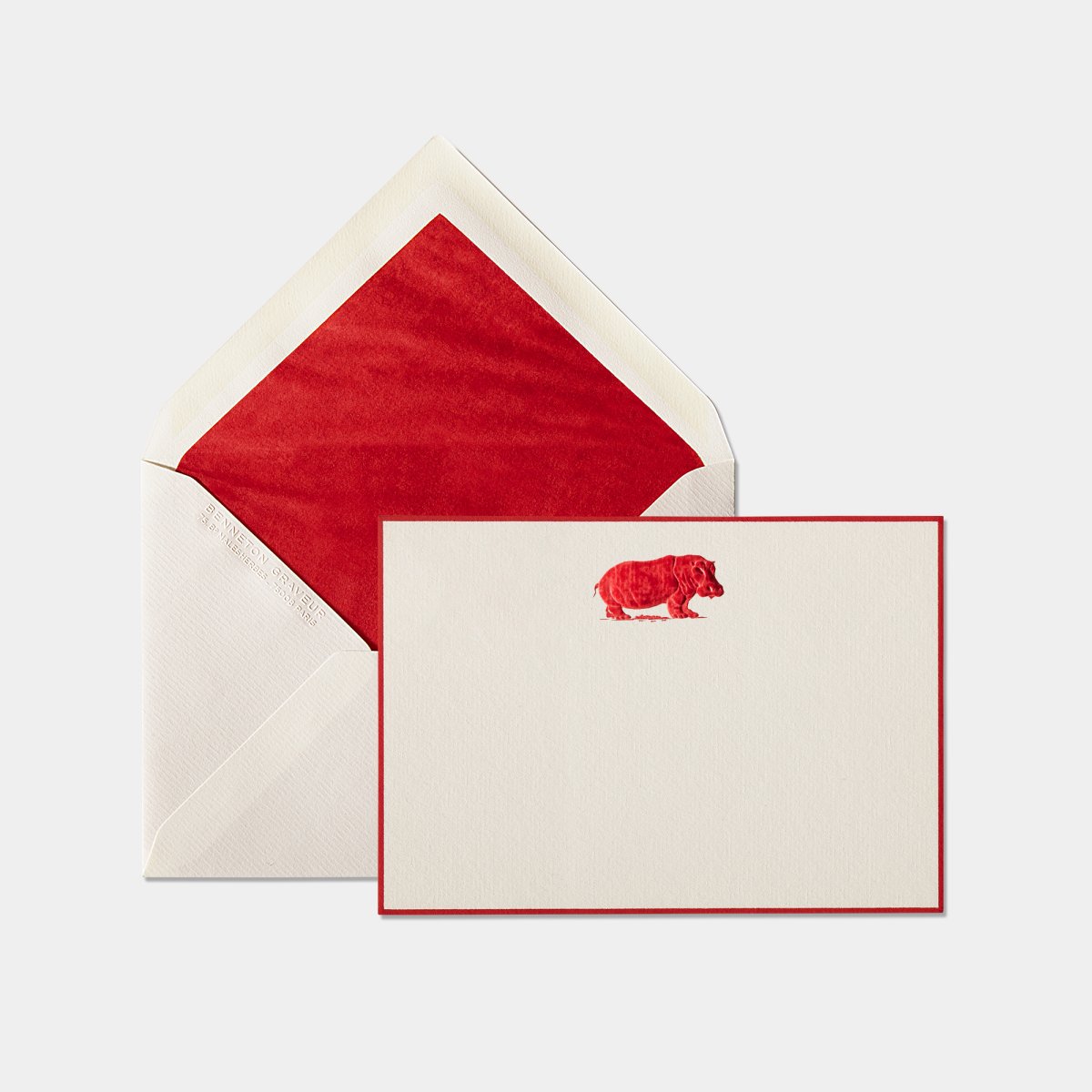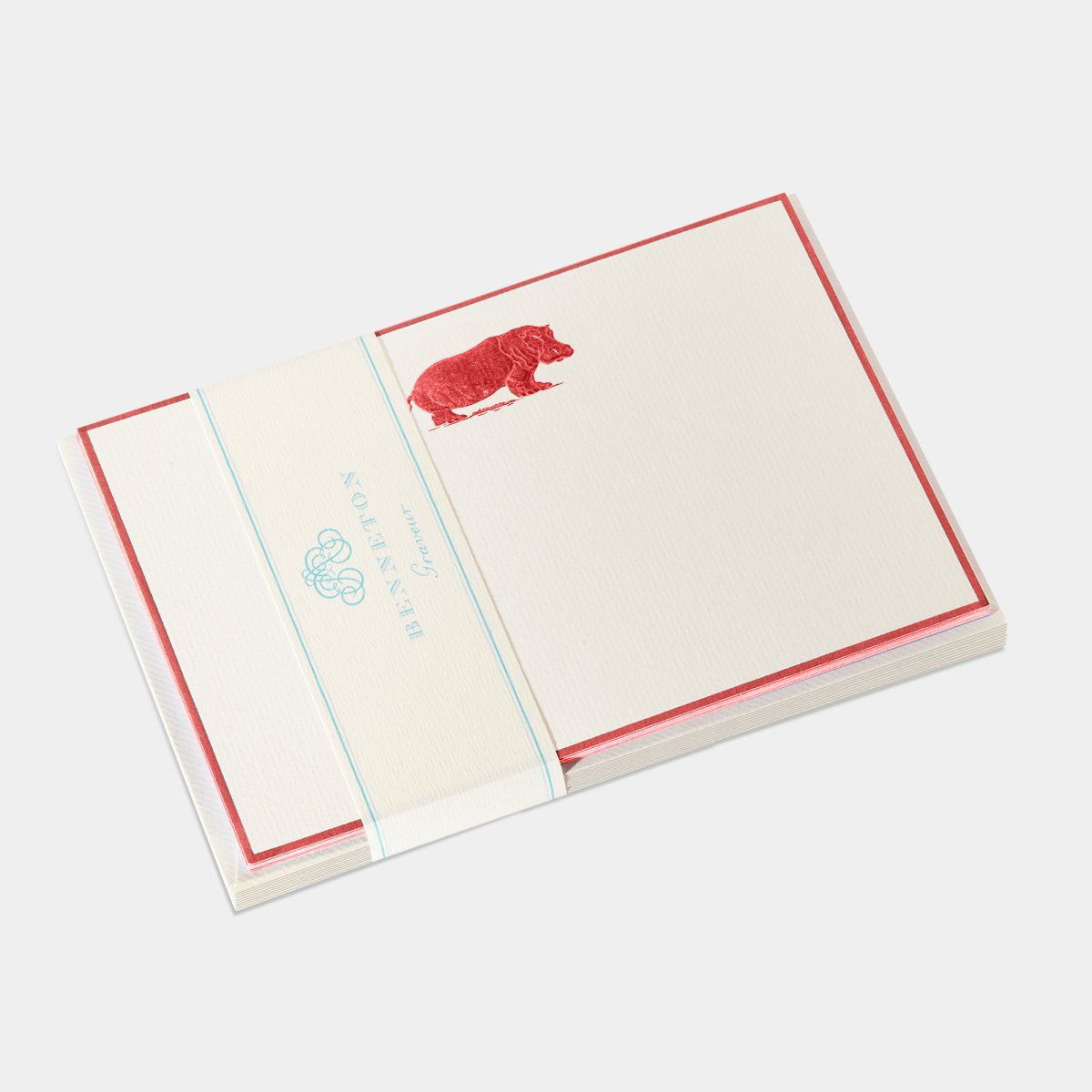 Benneton’s « hippopotamus » correspondence cards, like all our floral, animal and fantasy cards, are hand-stamped on a hand press, card by card, using a technique known as “brushed stamping”.