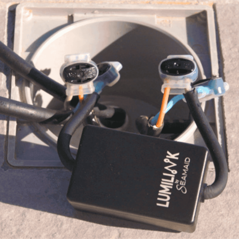 Le module Bluetooth Lumilink by Seamaid vous offre une gestion intuitive et sans fil de vos projecteurs et luminaires. Grâce à l’application mobile LUMILINK, pilotez l’éclairage de votre piscine ou de votre jardin directement depuis votre smartphone, où que vous soyez dans un rayon de 25 mètres.