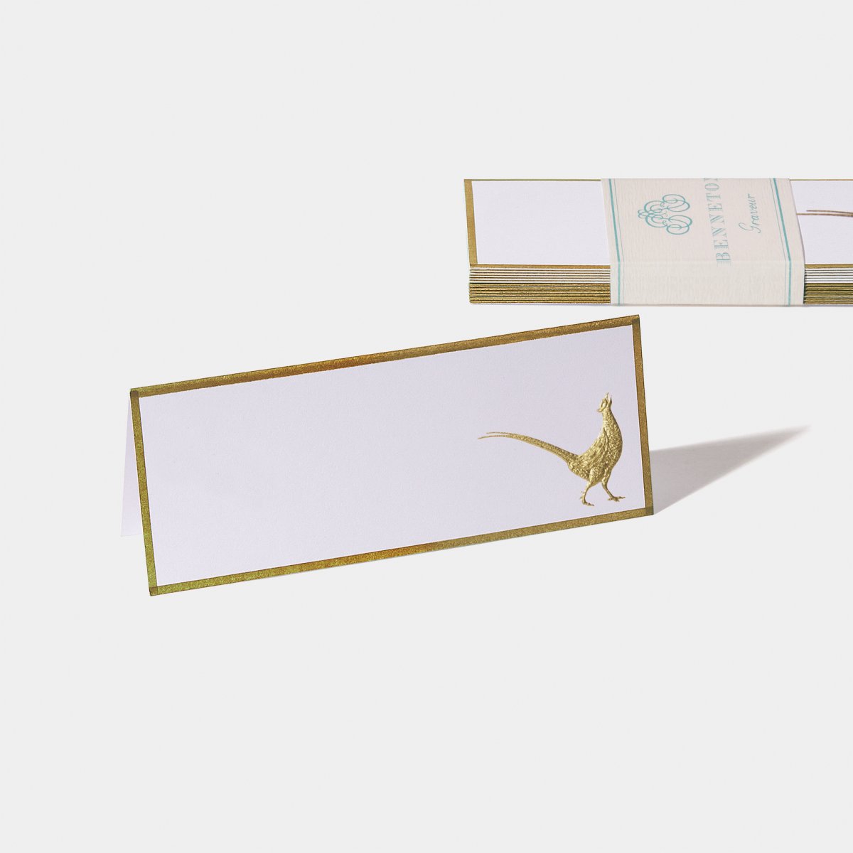 The Benneton collection of place cards, with their floral, animal and novelty motifs, are hand-stamped on a ‘hand press’, card by card, using a technique known as ‘brushed stamping’.