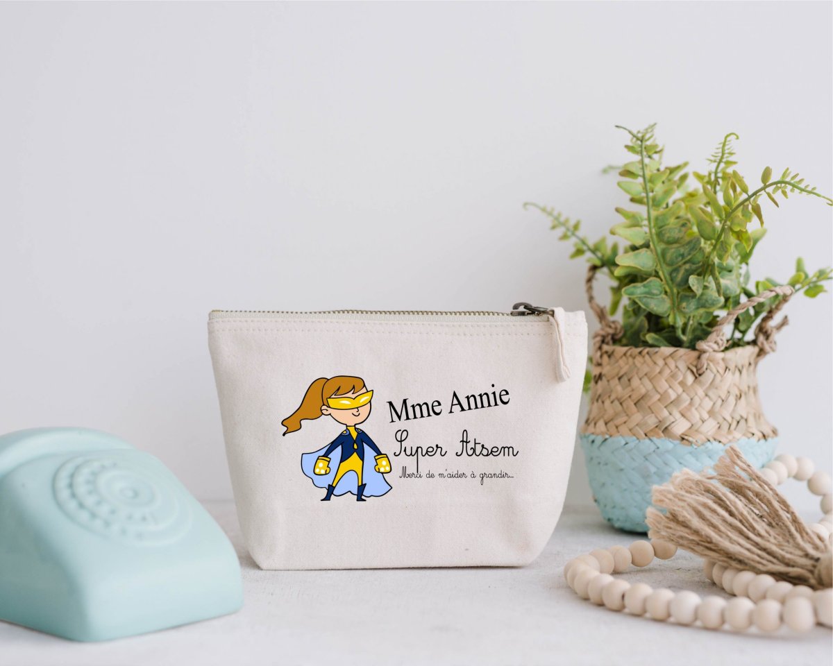 🌼👜 Pochette Atsem » 🌼👜 Dimensions : Dimensions :31×23 cm (Volume: 5 litres) (Volume: 5 litres) Cette pochette est bien plus qu’un simple accessoire, c’est un symbole d’amour et d’appréciation envers une Atsem qui occupe une place spéciale dans votre cœur. Avec ses dimensions idéales, cette pochette offre suffisamment d’espace pour ranger vos effets personnels avec élégance et praticité. Que ce soit pour une journée de sortie ou une soirée entre amis, elle sera votre fidèle compagnon. L’inscription brodée avec délicatesse sur le tissu rappelle la force, la bienveillance et la sagesse qui caractérisent votre Atsem . Chaque fois que vous portez cette pochette, c’est un doux rappel de l’amour et du respect que vous lui portez. Cette pochette devient ainsi bien plus qu’un simple accessoire, elle devient le reflet d’une relation précieuse