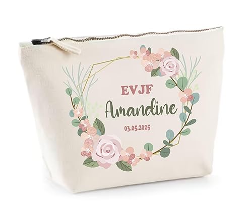 Offrez une touche personnalisée à votre EVJF avec cette pochette en toile zippée, décorée d’une couronne florale douce et poétique 🌸 Idéale pour la mariée ou les invitées, cette trousse peut contenir petits accessoires, maquillage, souvenirs… 🧵 Fabriquée en France, imprimée avec soin 📩 Merci d’indiquer le texte à inscrire dans la couronne lors de la commande