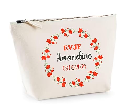 Soyez le premier à laisser votre avis sur “Pochette EVJF Personnalisée – Couronne de Fleurs Rouges – Prénom + Date – Trousse Mariée ou Team – Cadeau Enterrement Vie Jeune Fille”