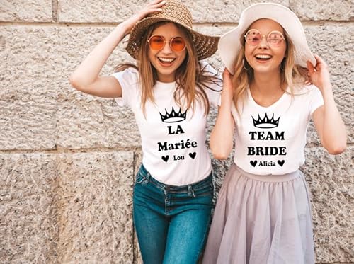 - 👑 Deux versions disponibles : « La Mariée » ou « Team Bride » – avec prénom personnalisé sous le texte.