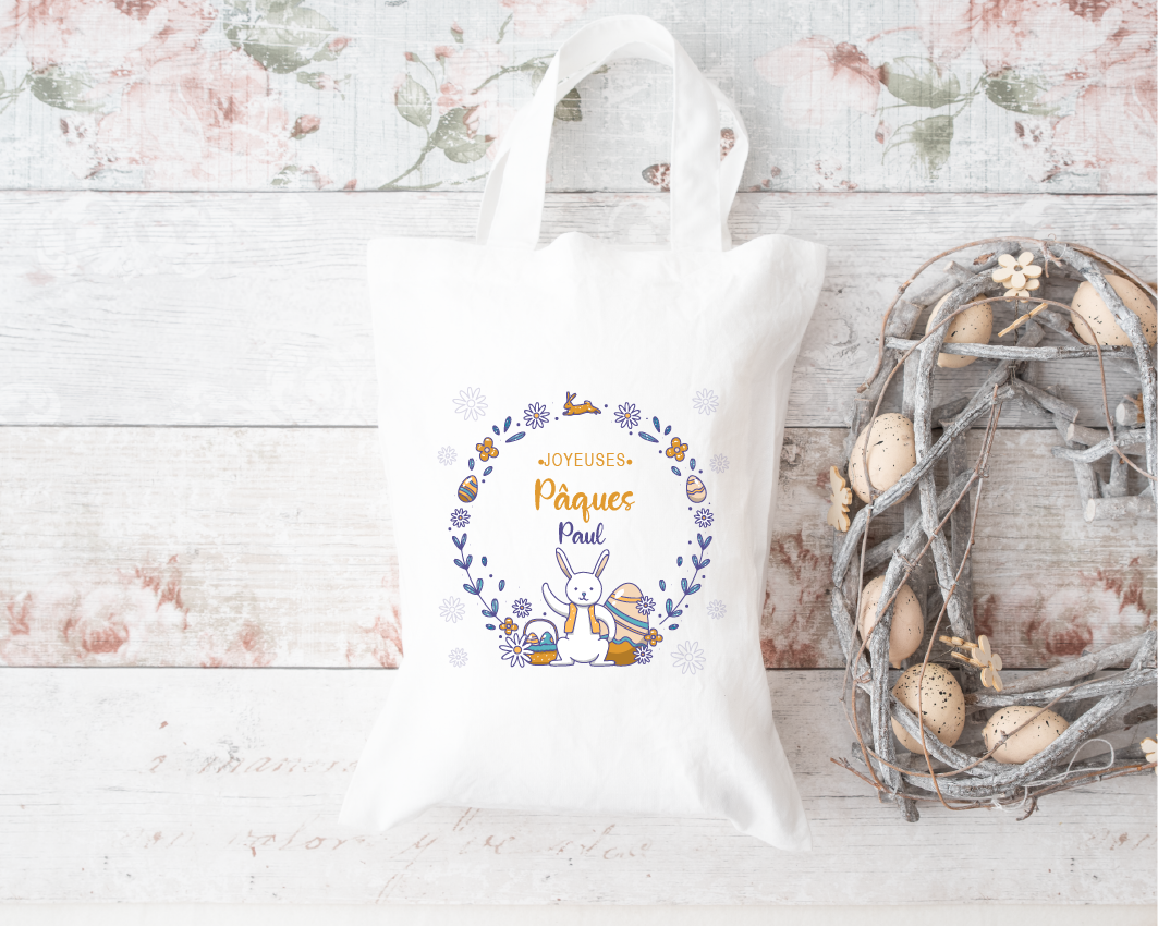 Le design enchanteur lié à la fête de Pâques, agrémenté du prénom de votre enfant, confère une touche de personnalisation unique à ce tote bag. Imaginez le bonheur sur le visage de votre petit explorateur en découvrant son nom associé à cette expérience magique!